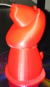 Superbe ! l’impression 3D débute sans problème. Par contre il est déjà 17h30, l’heure de partir, et l’imprimante indique une durée prévisionnelle d’impression de 3h50 ! La décision est prise de la laisser continuer son travail seule. Une séance bricolage étant prévue le lendemain matin, nous récupérerons le résultat de notre travail.